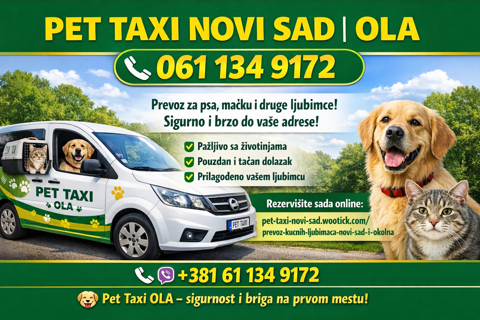 Potrebna vam je brza i sigurna usluga prevoza kućnih ljubimaca u Novom Sadu i okolini? Pet Taxi OLA pruža profesionalan transport pasa, mačaka i drugih kućnih ljubimaca sa ili bez vlasnika.