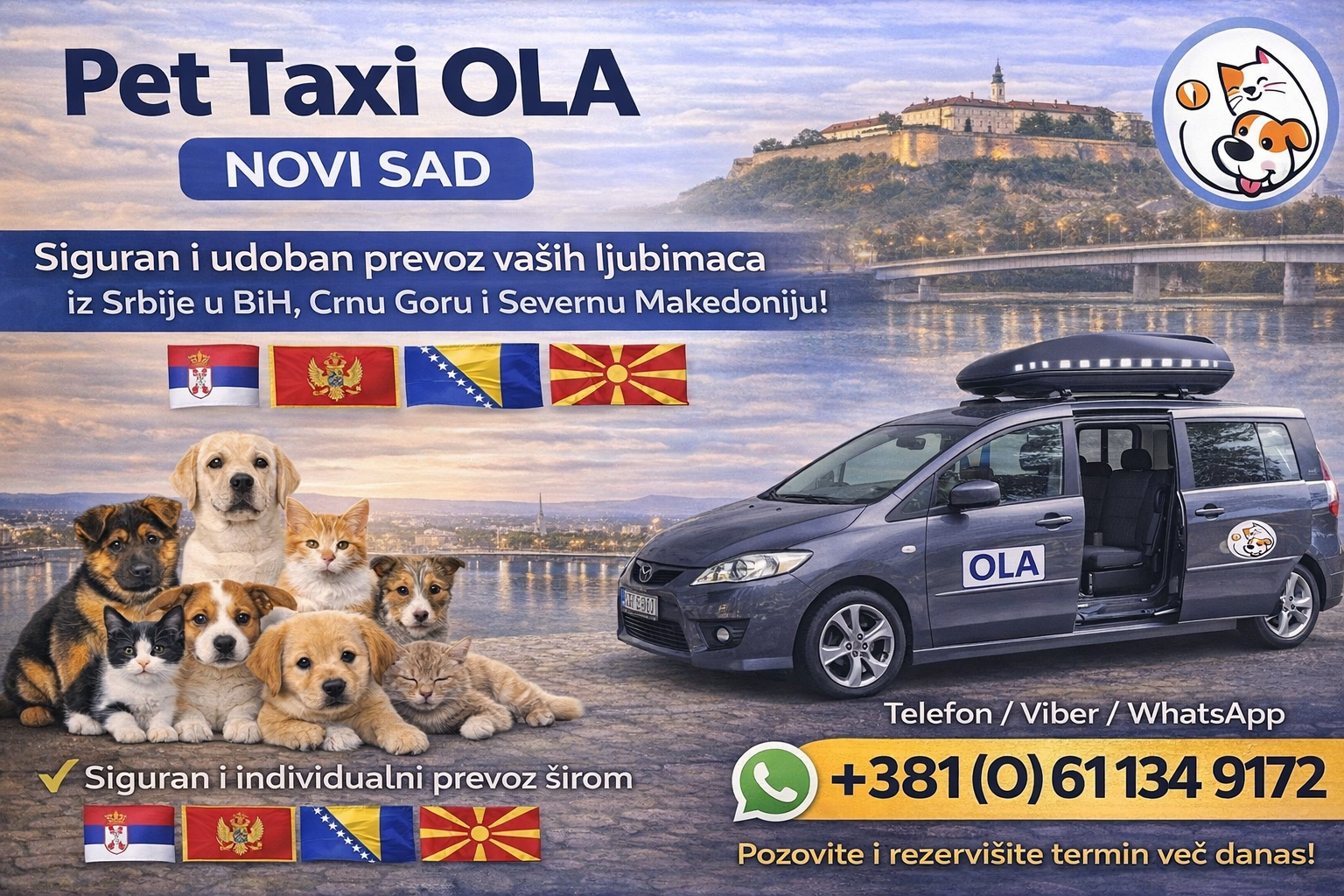 Pet Taxi OLA pruža profesionalan, siguran i udoban prevoz kućnih ljubimaca iz Srbije ka Bosni i Hercegovini, Crnoj Gori i Severnoj Makedoniji.